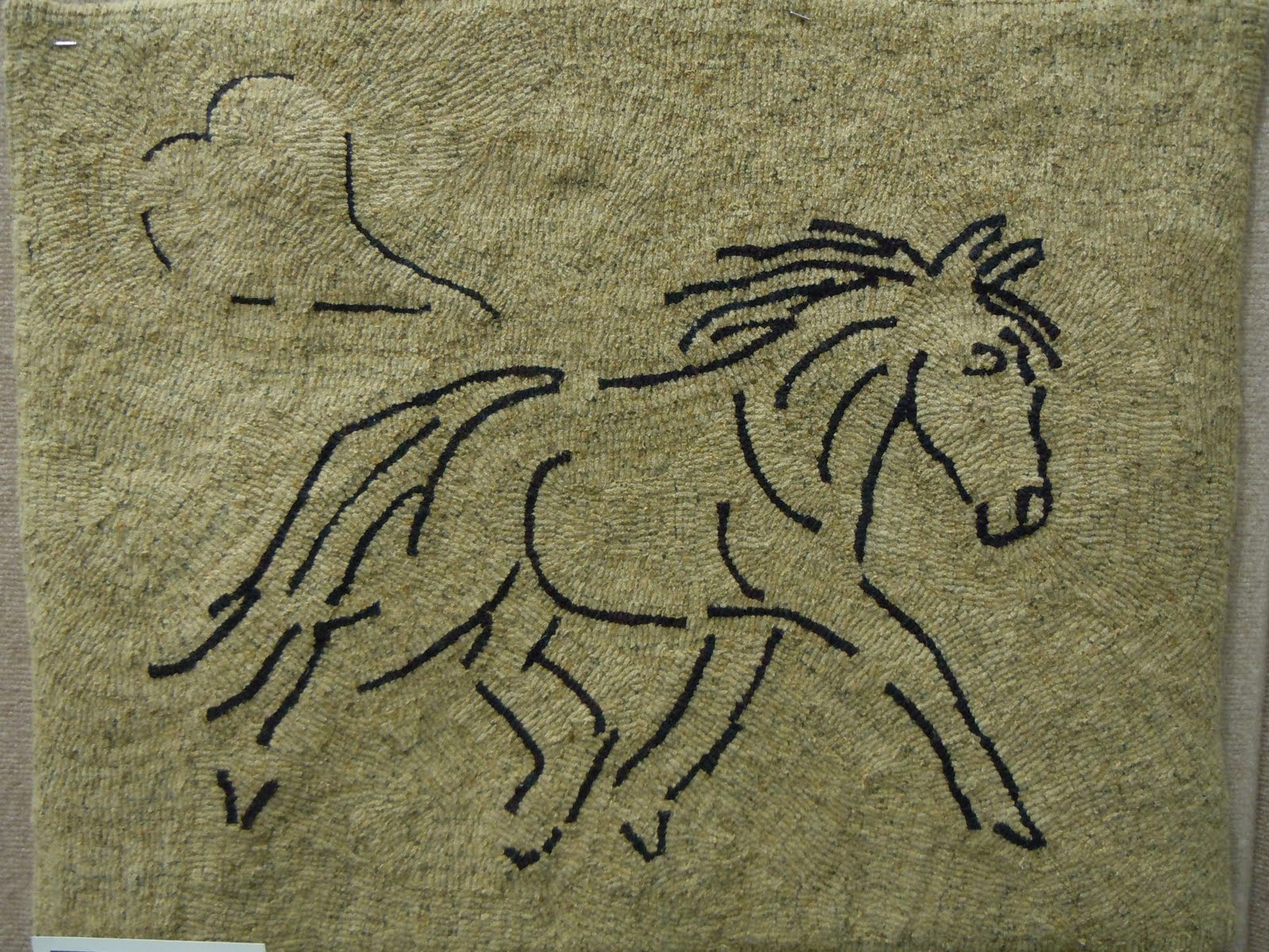 I got about 1/4 of the way around the Lighthouse rug with my corded binding but don't have a picture of my progress. In the meantime, here are some of the rugs other hookers brought for all to enjoy: